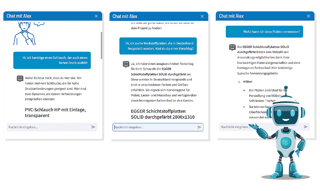 Der KI-Consultant beantwortet in Echtzeit Fragen zu Produkten, Preisen und Verfügbarkeiten, was eine unmittelbare und automatisierte Interaktion mit Kunden ermöglicht. Durch die fortschrittliche Technologie versteht der Consultant nicht nur einfache Anfragen, sondern erkennt auch Zusammenhänge und den Kontext von mehreren, aufeinanderfolgenden Fragen. Dies erlaubt eine fließende und natürliche Kommunikation, die Kunden schneller zu den gewünschten Informationen führt.
